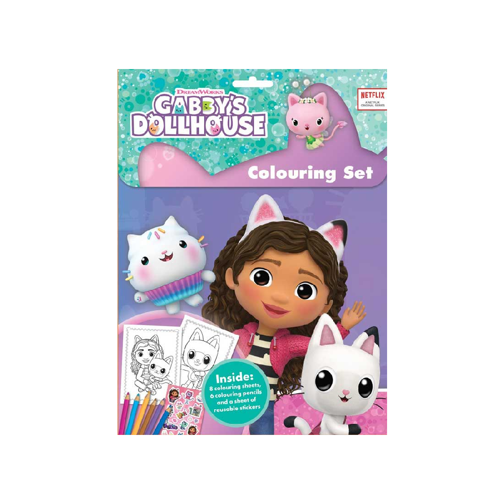 GABBY´S DOLLHOUSE-Bojanka sa bojicama i nalepnicama. Devojčice će uživati u bojenju motiva omiljene Gabby i njenih drugara. Poznati junaci dugo će im držati pažnju.