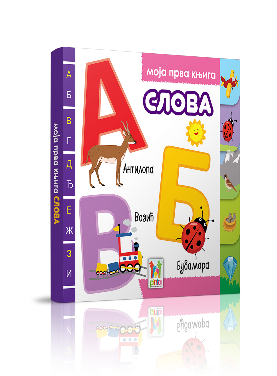 Ova edicija predstavlja četiri ključna prva pojma: slova, brojeve, boje i oblike. Pomaže mališanima da prepoznaju i nauče prve reči iz svog okruženja. Tvrdokartonirana knjiga bogato ilustrovana i zanimljiva.