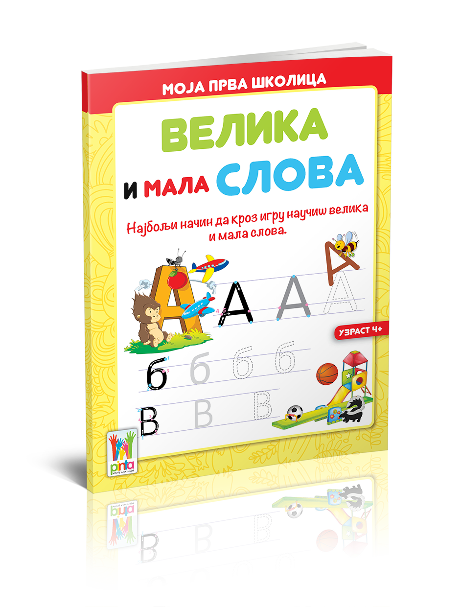 Knjiga za učenje pravilnog pisanja velikih i malih slova. Uz pomoć isprekidanih linija deca savladavaju tehniku pravilnog pisanja.